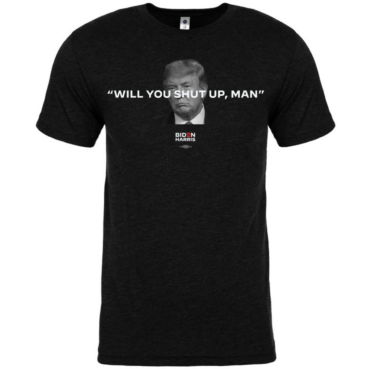 The Nice Shirts - Online Shopping for Clothing .... Show your support for joe biden to become the 46th president of the united states of america. But it just doesn't fit and i can't afford another one right now. Will you shut up man biden election debate vinyl decal sticker. Sign in or sign up. A representative for biden's campaign was not immediately available to confirm when the will you shut up, man shirts. Bernie sanders may still have the most creative campaign merch of this election cycle, but the biden campaign's promotional wing just got an infusion of star power. The biden campaign isn't the only party capitalizing on the democratic nominee's annoyance, either. Click here to get the fox news app. Just one more step… create your etsy password. Biden supporters and trump critics could relate to biden's will you shut up, man? line as many viewers grew tired of the president interrupting. Biden would later call trump the worst president american has ever had during another of trump's interjections later in the debate. Biden/harris poly bag yard sign. Courtesy of the biden victory fund. 5.0 out of 5 stars 1. Trump continually interrupted biden throughout the debate, so it is no surprise that the shut up line became a hit with biden supporters, quickly.